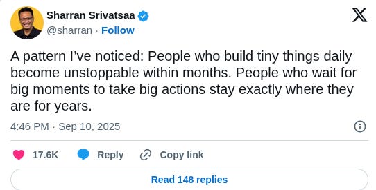 For my personal coding projects, I always aim to build apps with a breadth of features, enterprise-level support, and seamless user experience. I face a similar issue with writing. I want to write full length essays, well-researched think pieces and epic fantasy trilogies.
